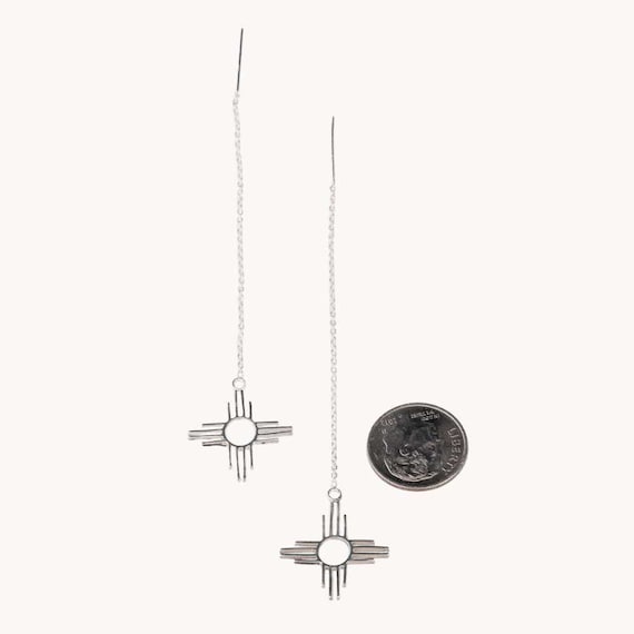 Sterling Silver Thread Earrings With Zia Symbol Zia Sun Etsy Uk